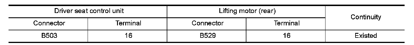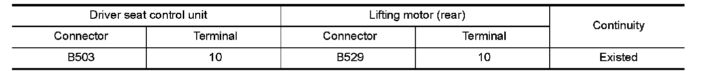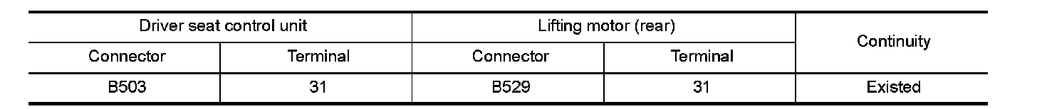 3.Check the continuity between driver seat control unit harness connector and lifting motor (rear) harness connector.