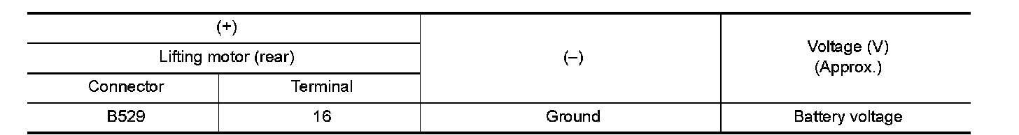 3.Check the voltage between lifting motor (rear) harness connector and ground.