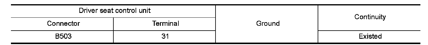 4.Check the continuity between driver seat control unit harness connector and ground.