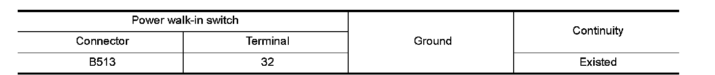 2.Check continuity between driver seat control unit harness connector and power walk-in switch harness connector.