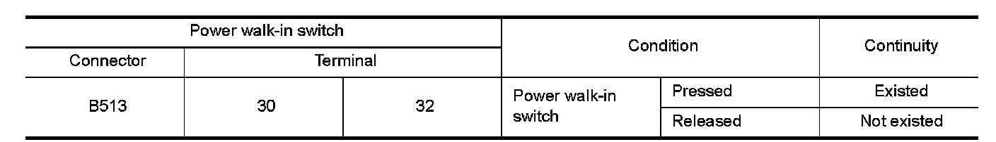 NO- Replace power walk-in switch (Built in walk-in lever). Refer to "Exploded View" Exploded View.