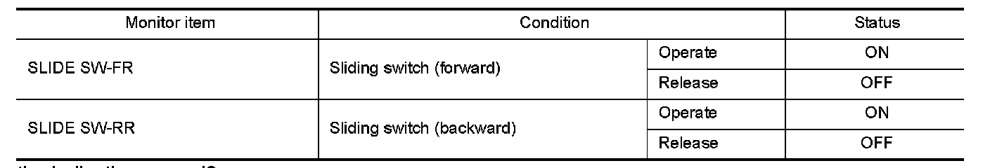 3.Check sliding switch signal under the following conditions.