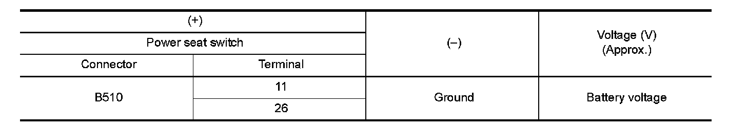 3.Check voltage between power seat switch harness connector and ground.