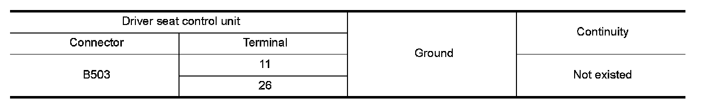 3.Check continuity between driver seat control unit harness connector and ground.