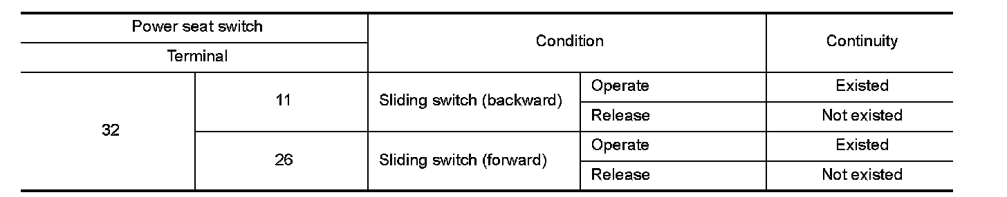 3.Check continuity between power seat switch terminals.