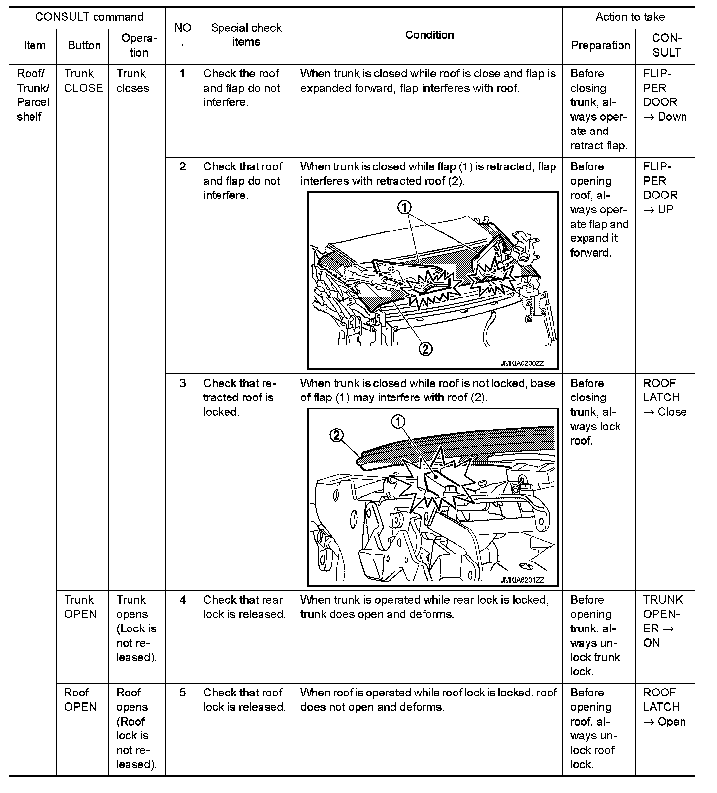 Operate each part using CONSULT after understanding how roof normally operates. Otherwise, each part may interfere and may be damage.