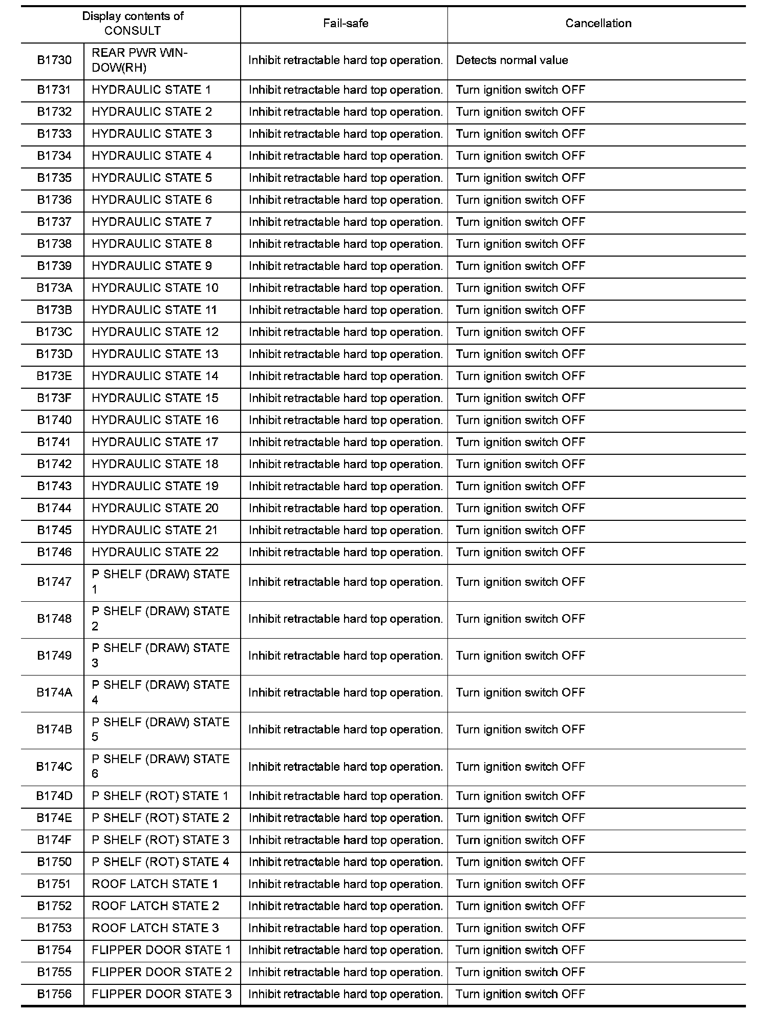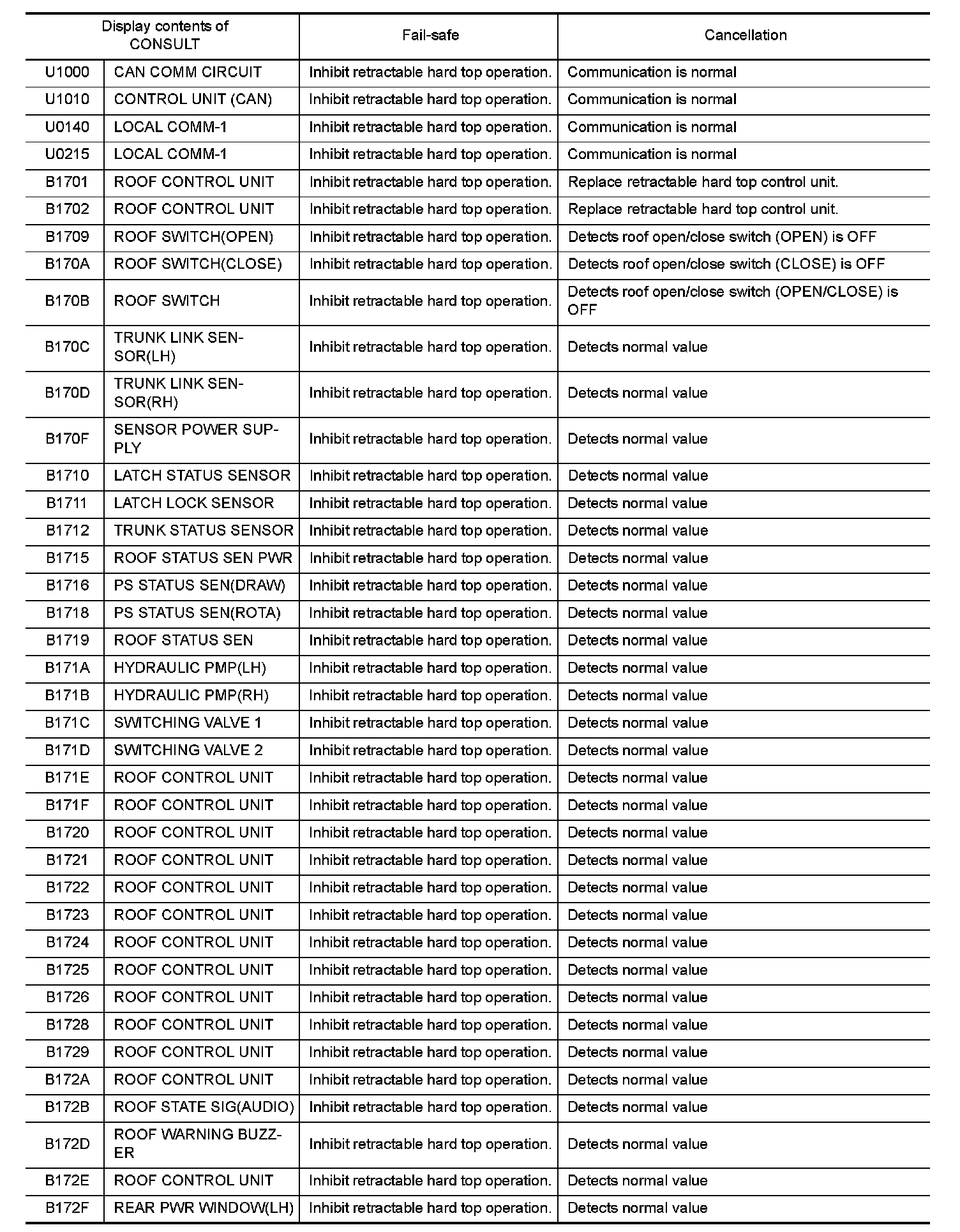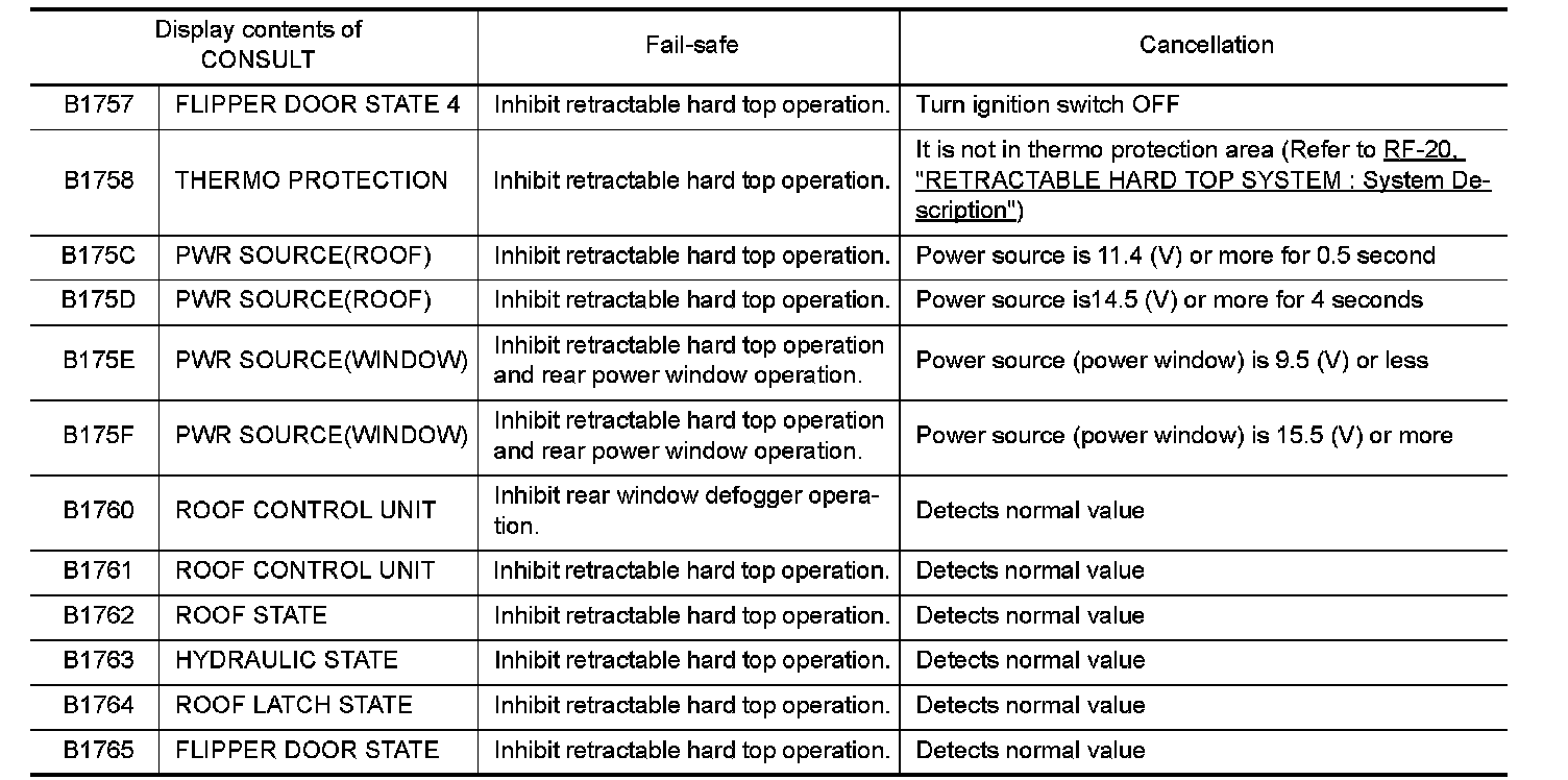 Retractable hard top control unit performs fail-safe control when any DTC are detected.