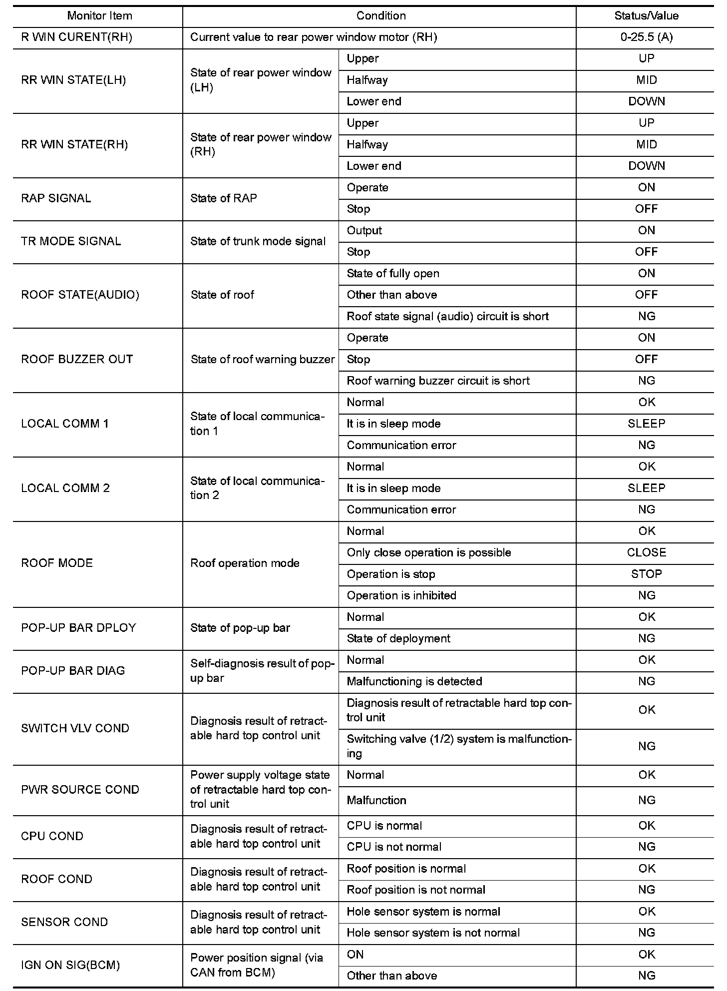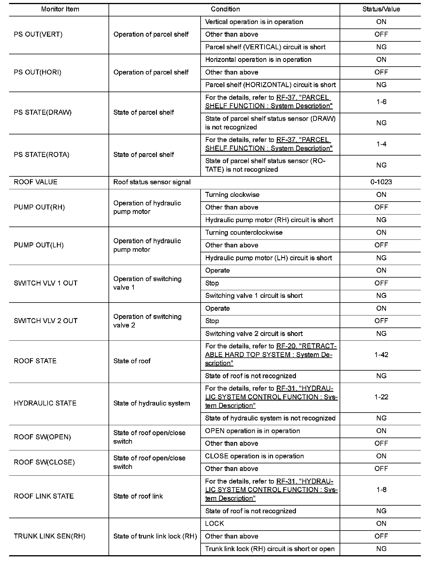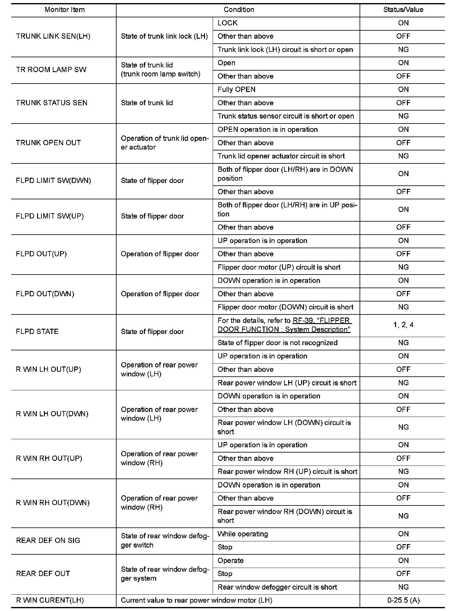 The following table includes information (items) inapplicable to this vehicle. For information (items) applicable to this vehicle, refer to CONSULT display items.