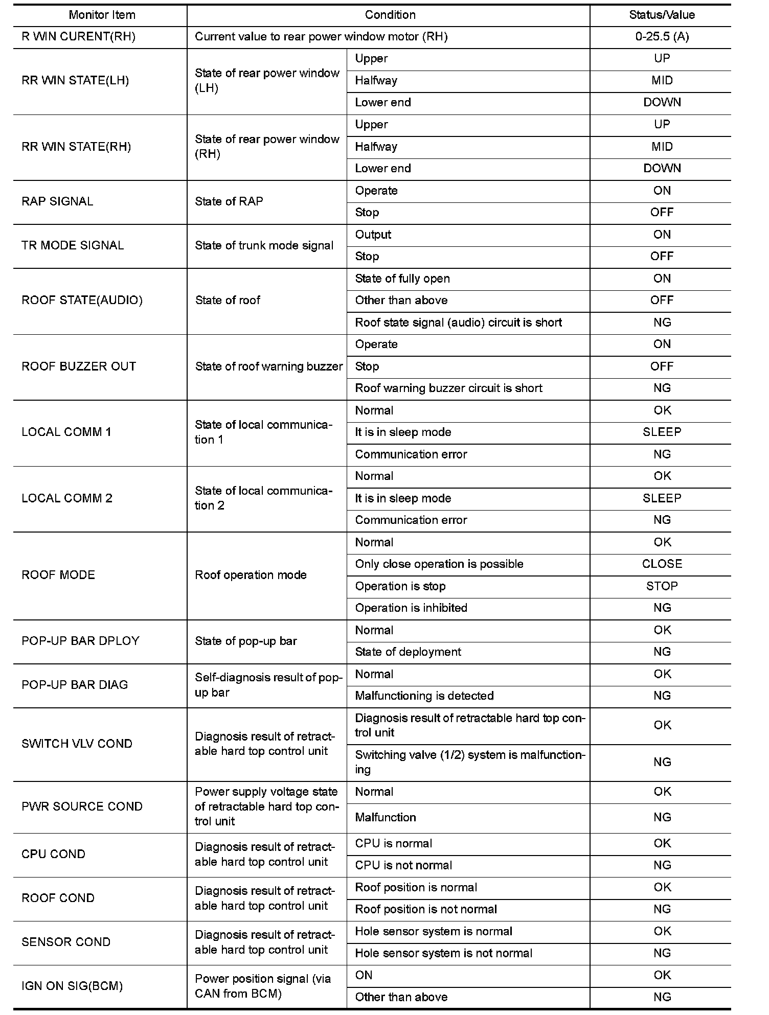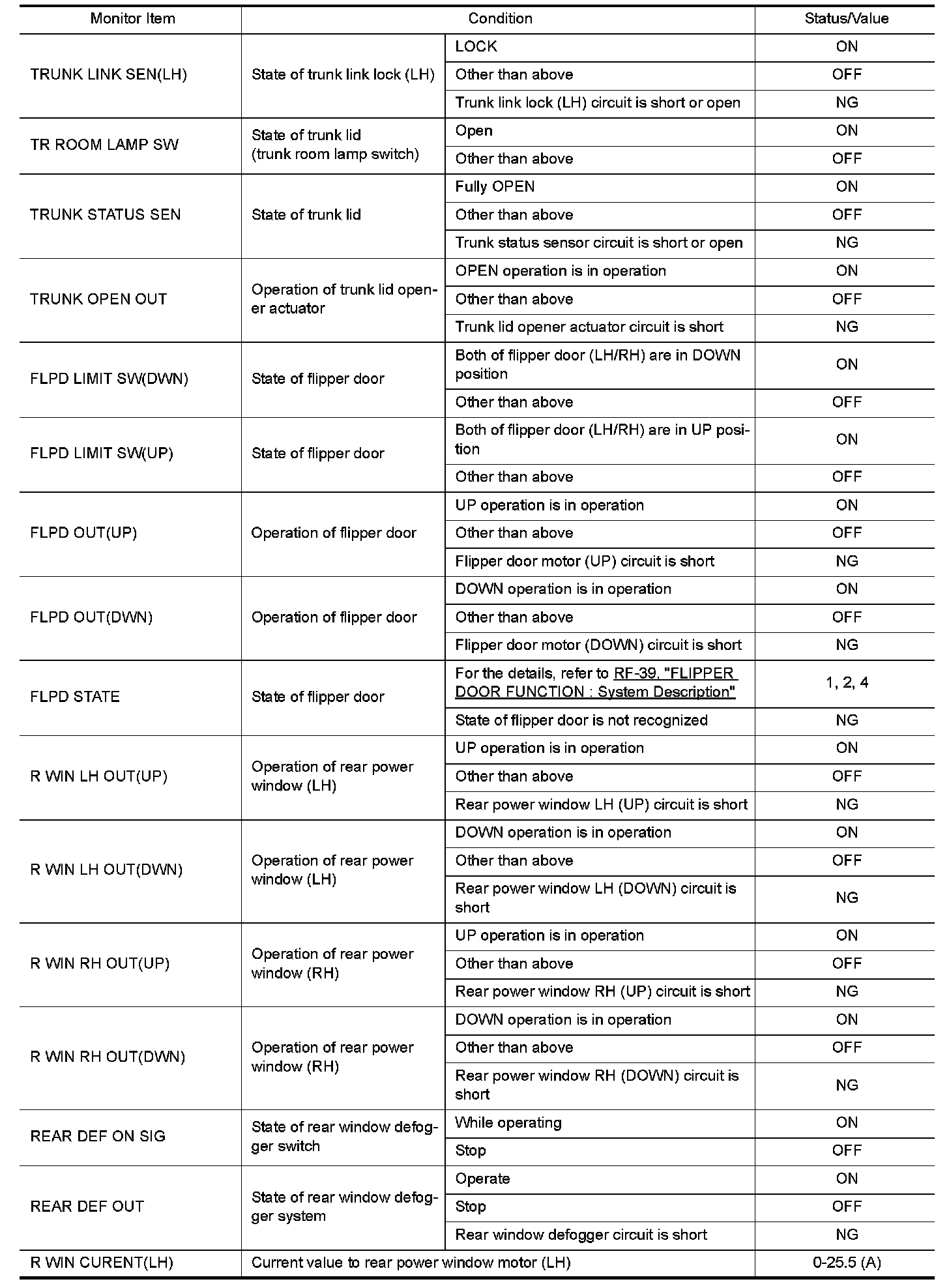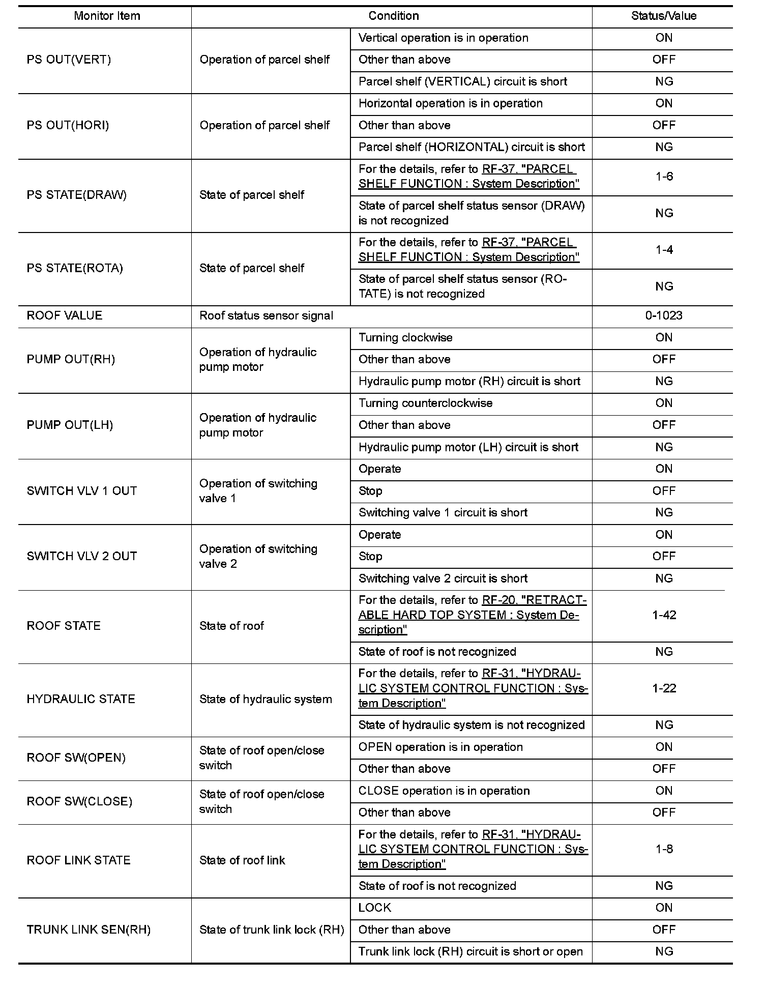 The following table includes information (items) inapplicable to this vehicle. For information (items) applicable to this vehicle, refer to CONSULT display items.