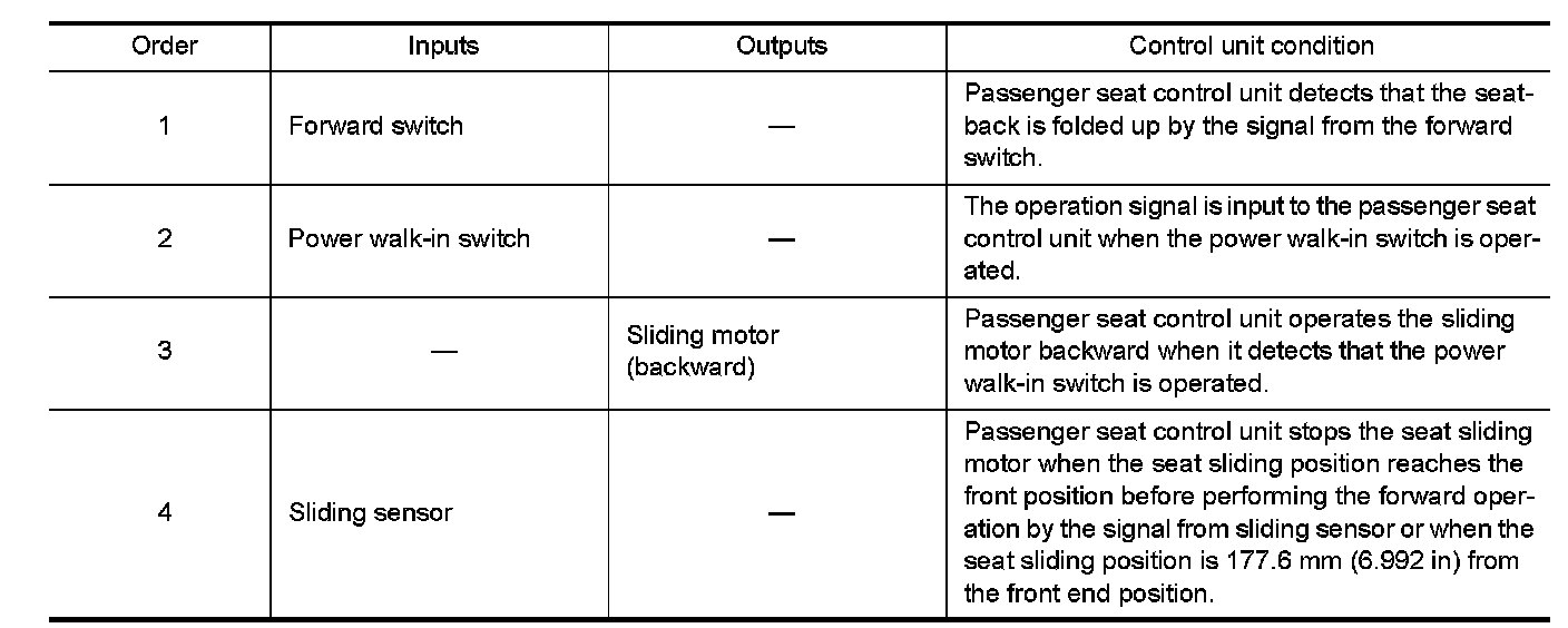 Slides the driver seat to the front end position (sliding limit switch: ON) by operating the power walk-in switch when the seatback is folded down.