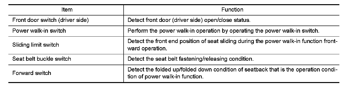 POWER WALK-IN FUNCTION : Component Description