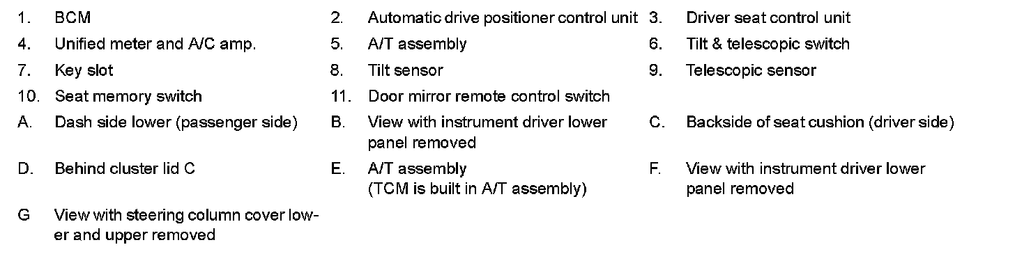 AUTOMATIC DRIVE POSITIONER SYSTEM : Component Parts Location