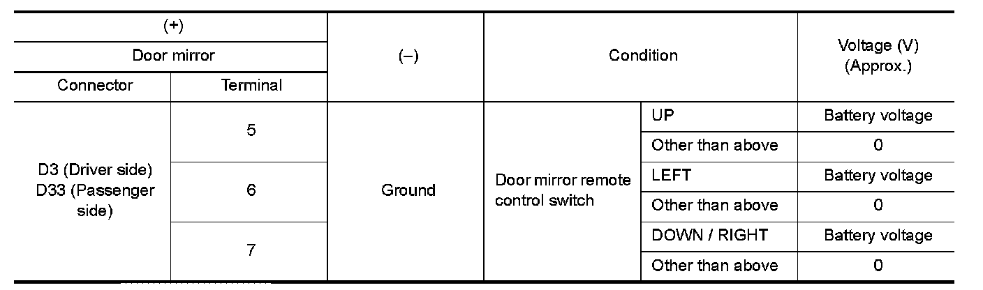 3.Check the door mirror motor operation.