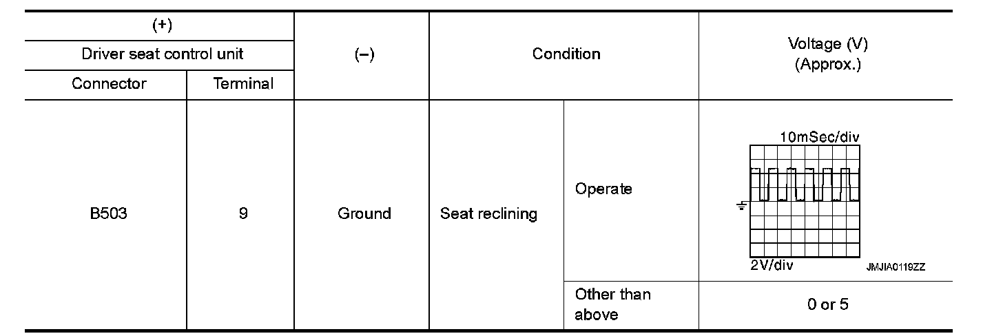2.Check voltage signal between driver seat control unit harness connector and ground using oscilloscope.