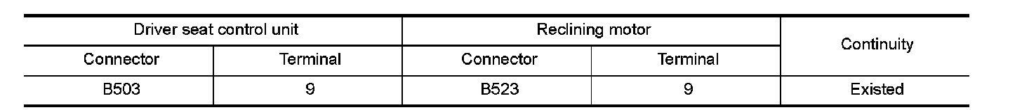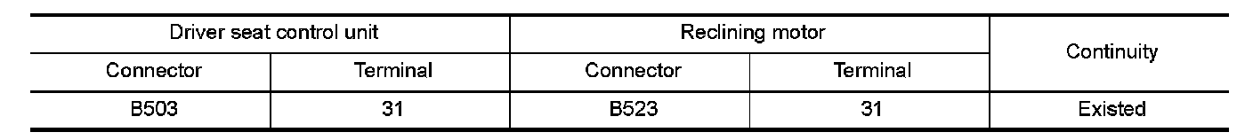 3.Check continuity between driver seat control unit harness connector and reclining motor harness connector.