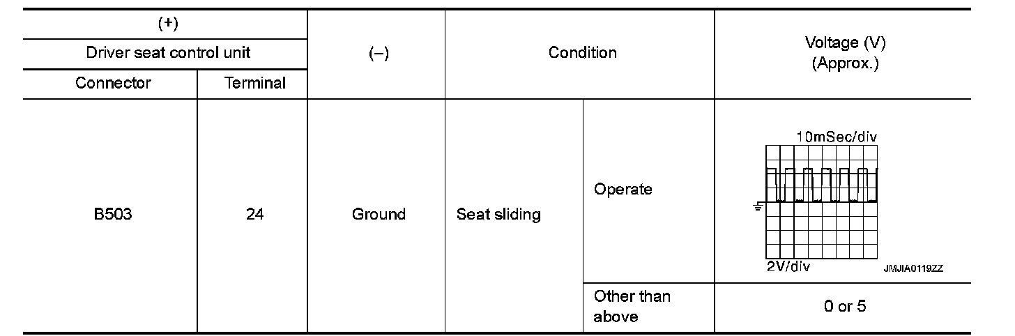 2.Check voltage signal between driver seat control unit harness connector and ground using oscilloscope.