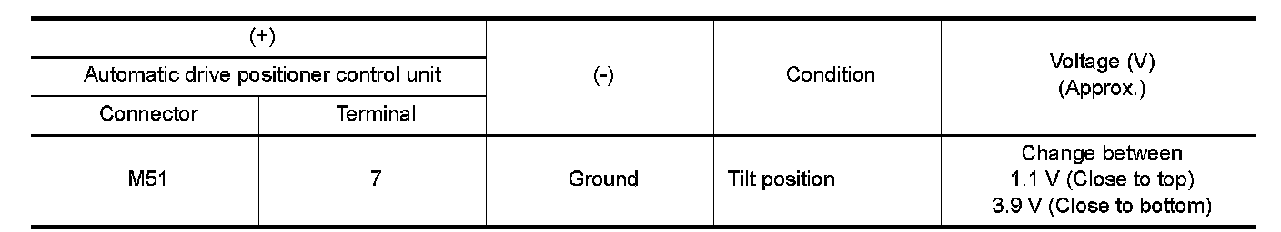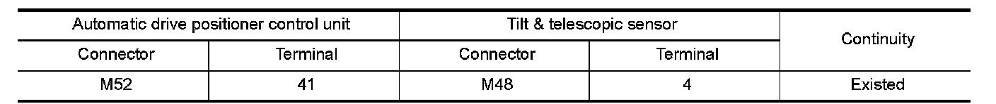 3.Check continuity between automatic drive positioner control unit harness connector and tilt & telescopic sensor harness connector.