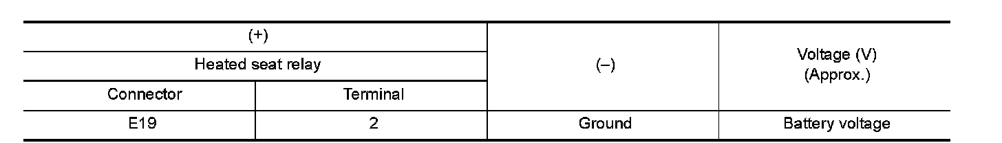 4.Check voltage between heated seat relay terminal connector and ground.