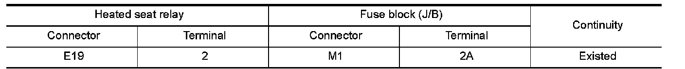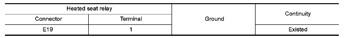 2.Check continuity between heated seat relay terminal connector and ground.