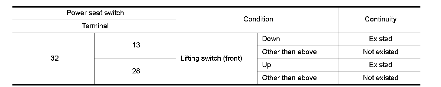 3.Check continuity between power seat switch terminals.