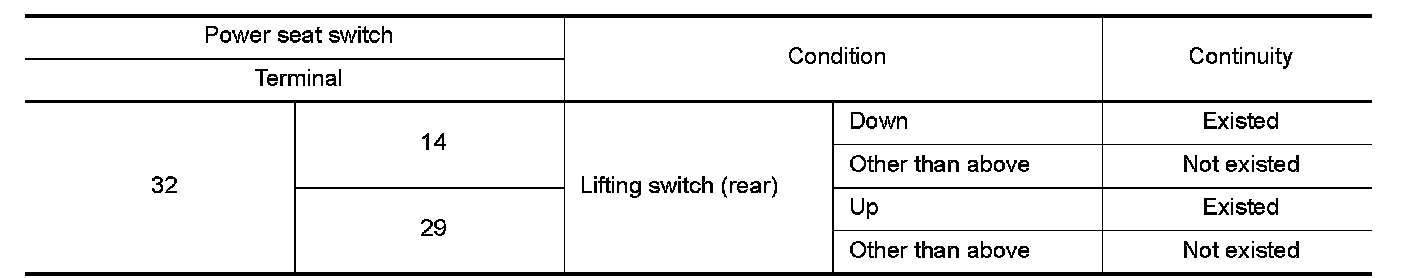 NO- Replace power seat switch. Refer to "Removal and Installation" Power Seat Switch.