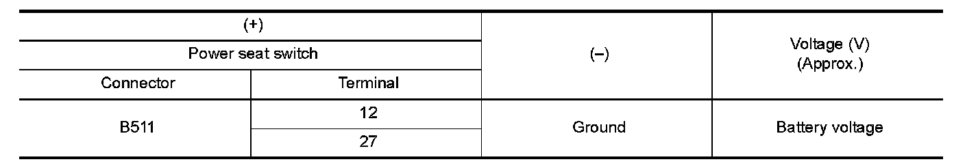 3.Check voltage between power seat switch harness connector and ground.