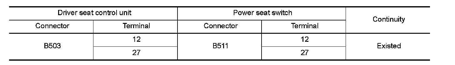 2.Check continuity between driver seat control unit harness connector and power seat switch harness connector.