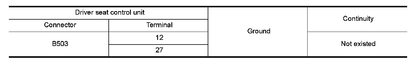 3.Check continuity between driver seat control unit harness connector and ground.