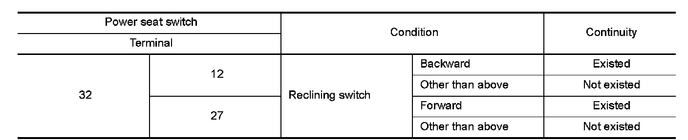 3.Check continuity between power seat switch terminals.