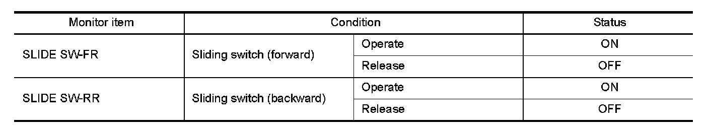 2.Select "SLIDE SW-FR", "SLIDE SW-RR" in the "Data monitor" mode using CONSULT.