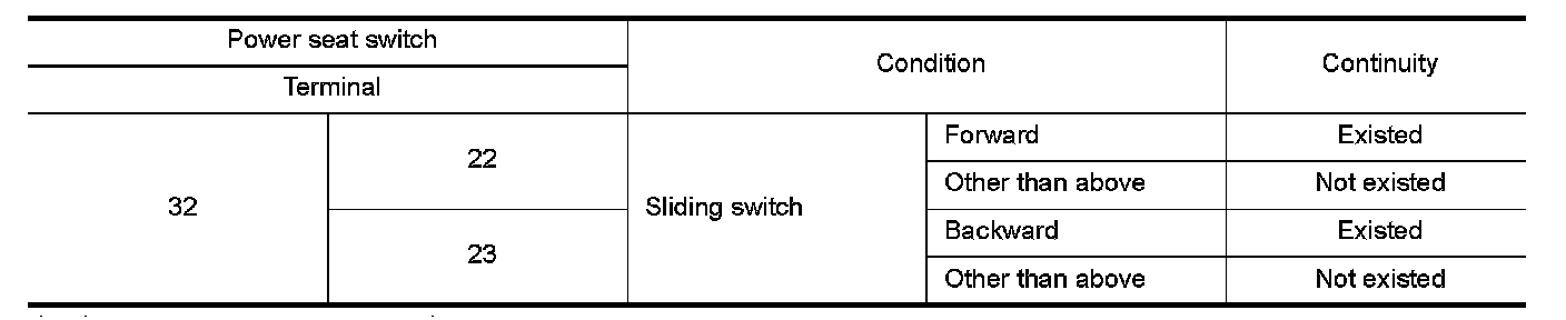 3.Check continuity between power seat switch terminals.