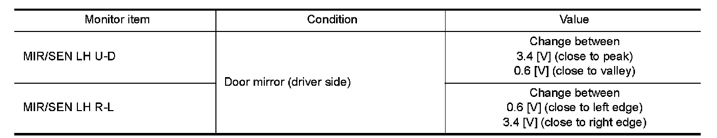 3.Check mirror sensor (driver side) signal under the following condition.