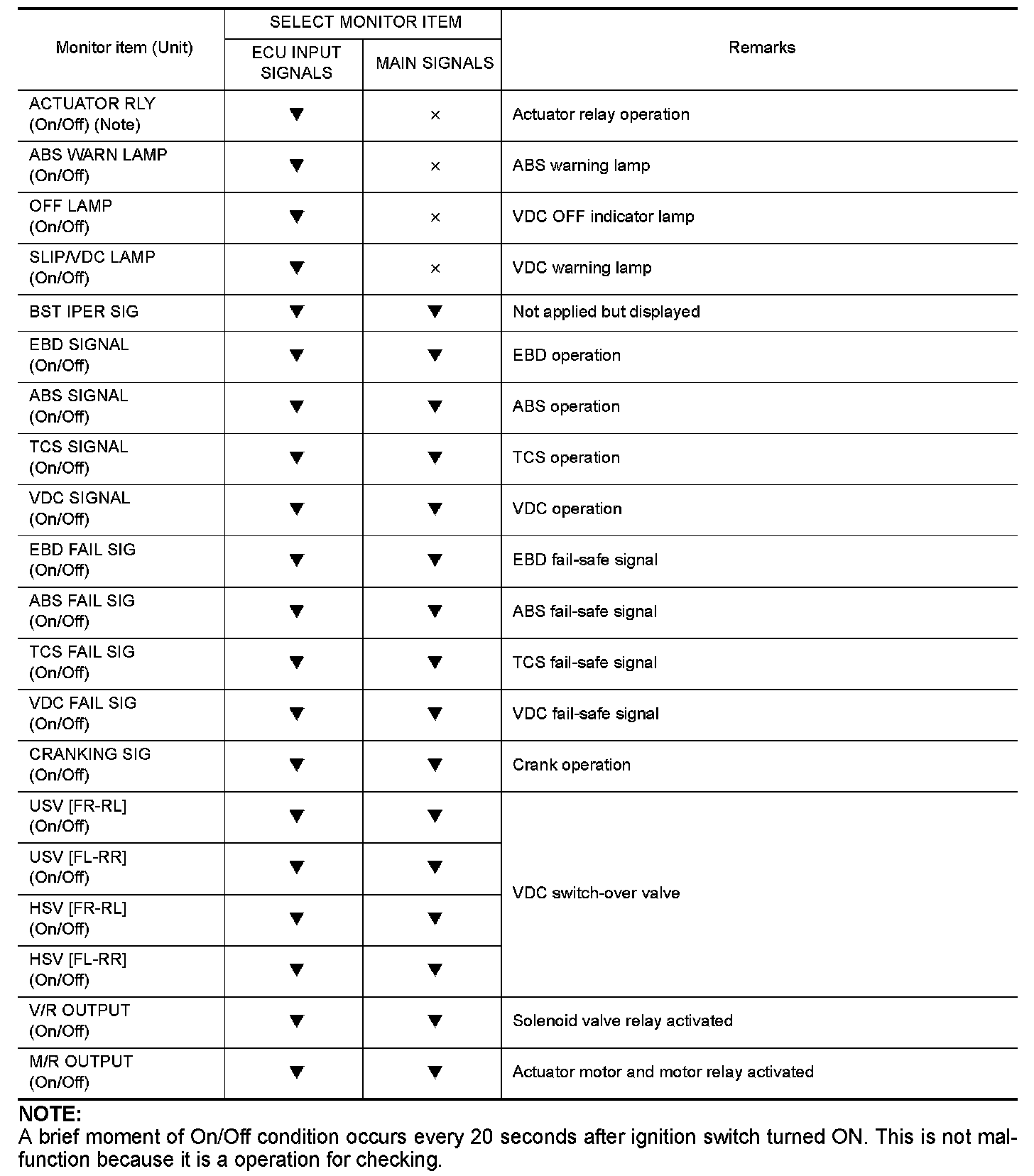The following table includes information (items) inapplicable to this vehicle. For information (items) applicable to this vehicle, refer to CONSULT display items.