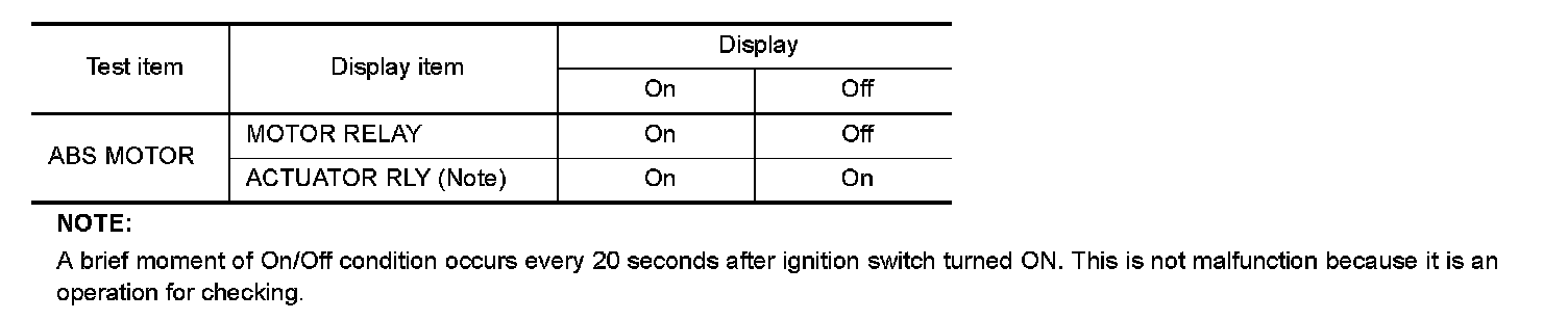 - When active test is performed while depressing the pedal, the pedal depression amount will change. This is normal. (Only solenoid valve and ABS motor.)