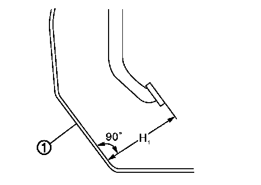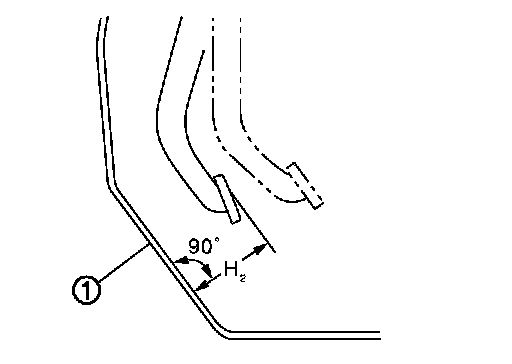 Check the height (H1) between the dash lower panel (1) and the brake pedal upper surface.