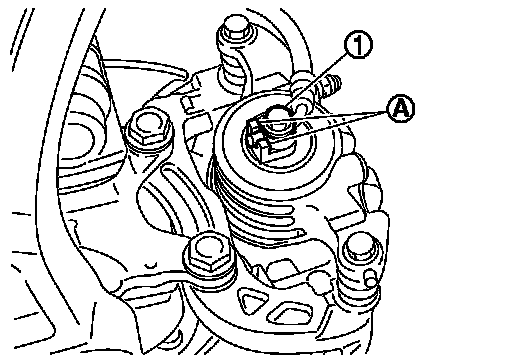 2.Align the brake hose pin to the projection (A) of the brake caliper assembly and tighten the union bolt (1) to the specified torque.