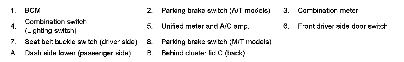 PARKING BRAKE RELEASE WARNING CHIME : Component Parts Location