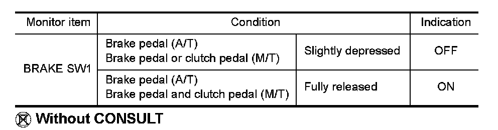 2.Select "BRAKE SW1" in "DATA MONITOR" mode with CONSULT.