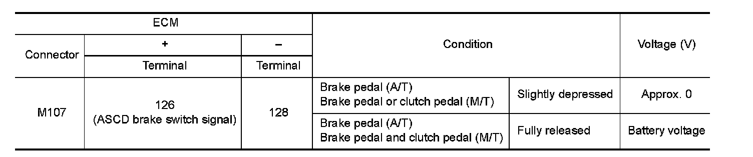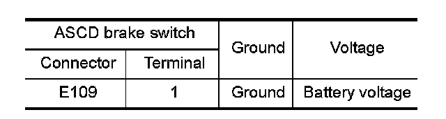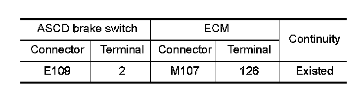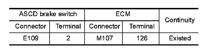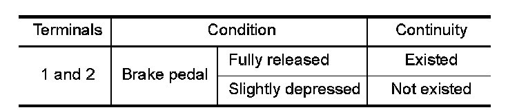 2.Check the continuity between ASCD brake switch terminals under the following conditions.
