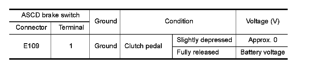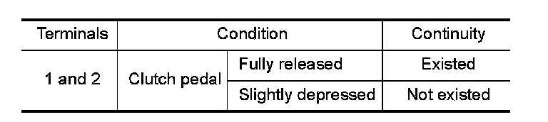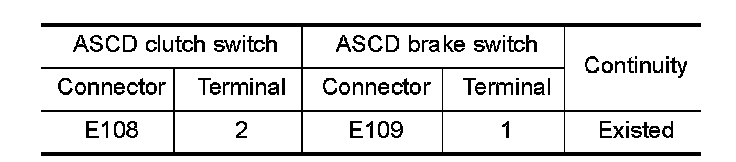 2.Check the continuity between ASCD clutch switch terminals under the following conditions.