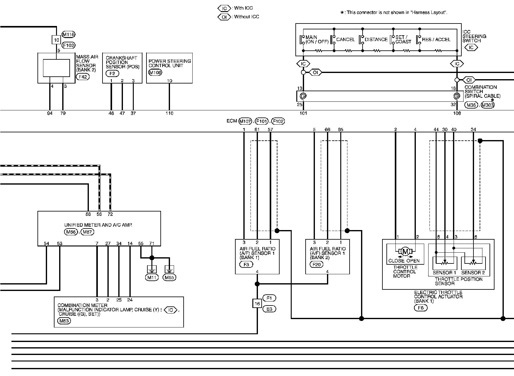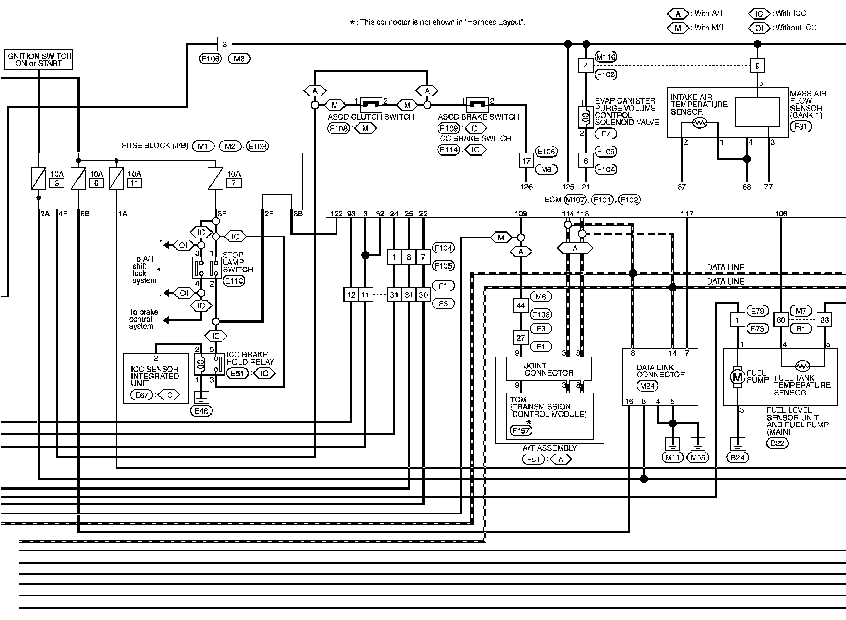 For connector terminal arrangements, harness layouts, and alphabets in a (option abbreviation; if not described in wiring diagram), refer to "Connector Information" Connector Information.