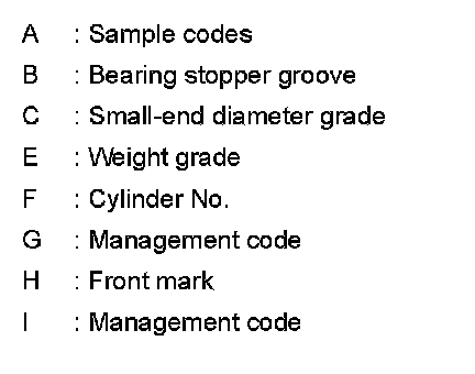 1.Apply connecting rod big end diameter grade stamped (D) on connecting rod side face to the row in the "CONNECTING ROD