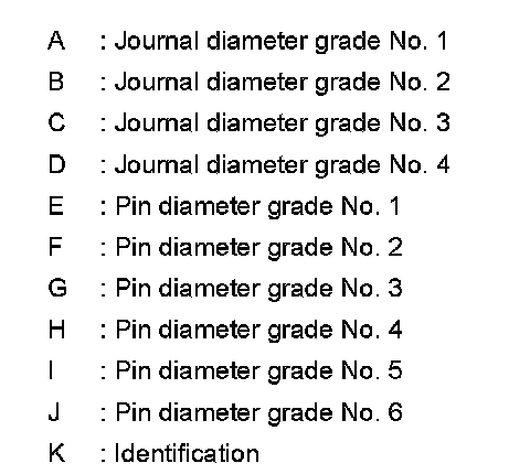 2.Apply crankshaft pin journal diameter grade stamped on crankshaft front side to the column in the "CONNECTING ROD