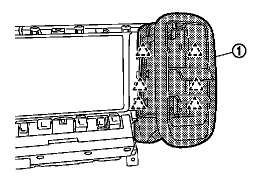 2.Disengage fixing pawls, and then remove center ventilator grille (1).