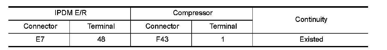 3.Check continuity between IPDM E/R harness connector and compressor harness connector.