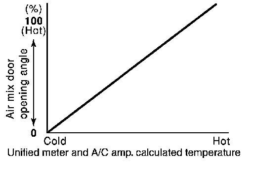 The air mix doors are automatically controlled so that in-vehicle temperature is maintained at a preset value by the temperature setting, ambient temperature, intake temperature, in-vehicle temperature and amount of sunload.