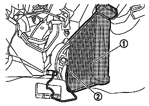 3.Remove intake sensor (2) from evaporator, and then remove evaporator.