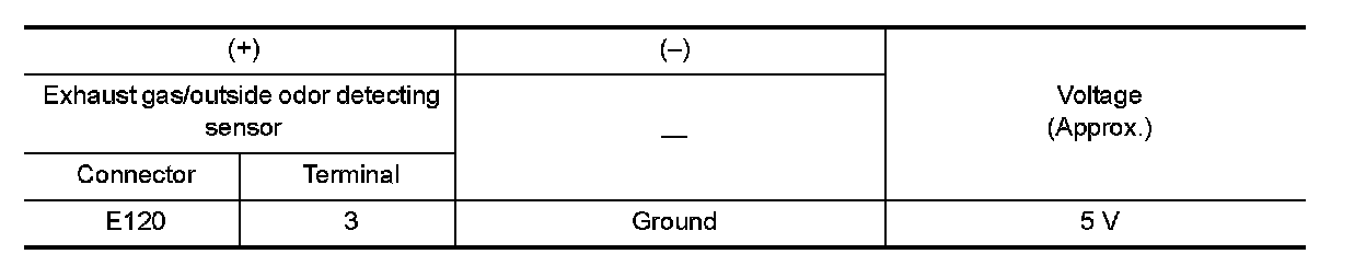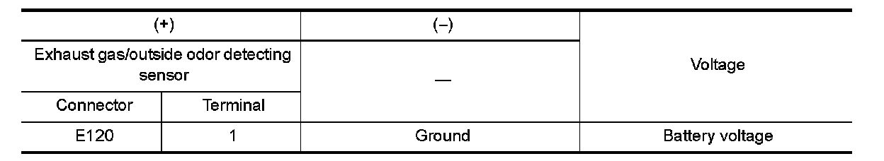 4.Check voltage between exhaust gas/outside odor detecting sensor harness connector and ground.