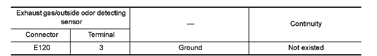 Check continuity between exhaust gas/outside odor detecting sensor harness connector and ground.