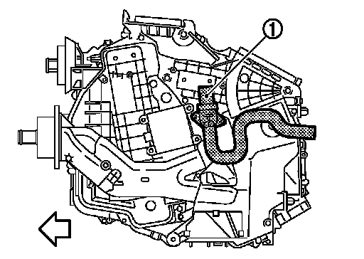 The aspirator (1) is located on drivers side of heater & cooling unit assembly. It produces vacuum pressure due to air discharged from the heater & cooling unit assembly, continuously taking compartment air in the aspirator.